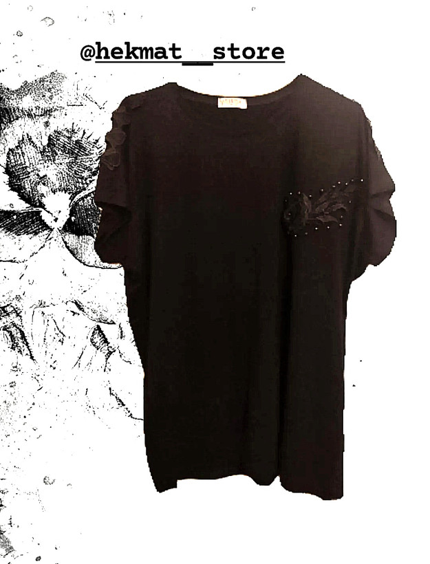 تی شرت زنانه و دخترانه گیپور طرح دار مشکی مدل گل رز