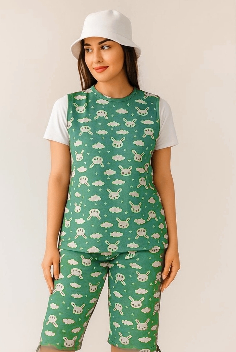 ست لباس راحتی تاپ و شلوارک نخی زنانه