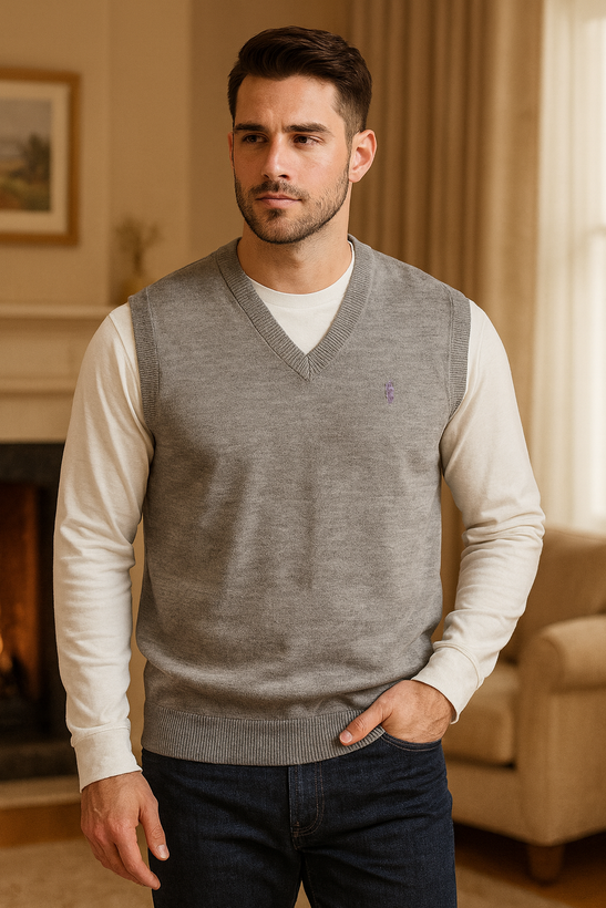 جلیقه،ژیله مردانه بافت رنگ طوسی روشن
