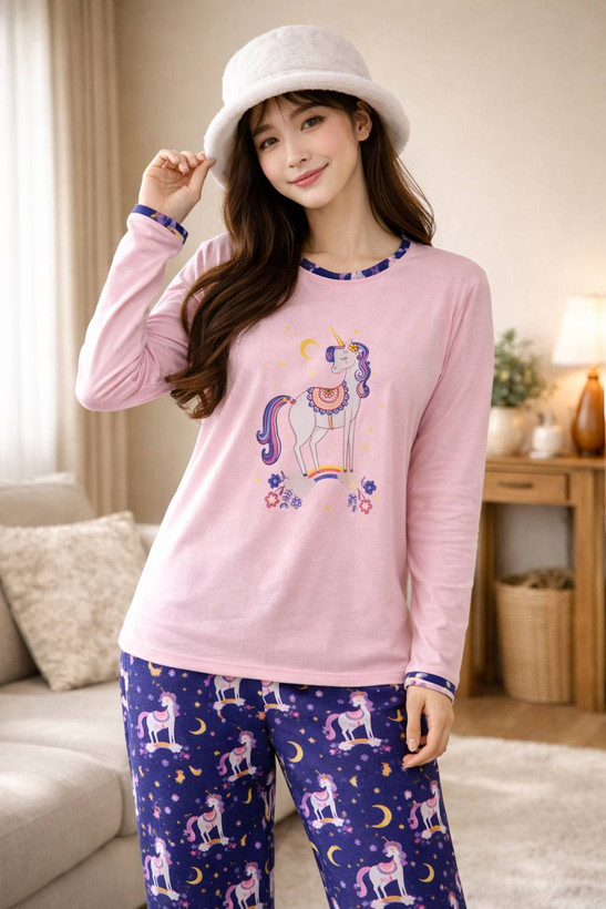 ست بلوز و شلوار راحتی زنانه طرح عروسکی 🦄✨
